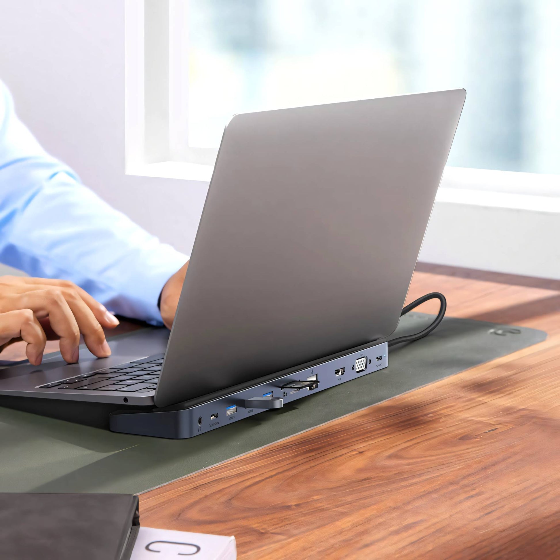 This versatile 11-port hub transforms your USB-C device into a complete workstation with 4K HDMI output, Gigabit Ethernet, multiple USB 3.0 ports, SD/TF card readers, and 100W Power Delivery charging - all in one compact adapter.