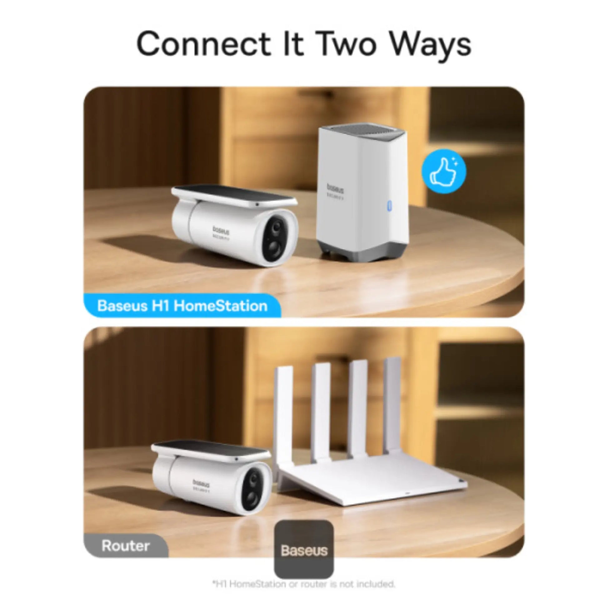 Secure your home with the Baseus Security S1 Outdoor 2K Solar Security Camera featuring crystal-clear 2K resolution, solar-powered charging, a powerful 10400mAh battery, and IP67 waterproof protection. Equipped with AI motion detection, a 145° wide-angle lens, built-in 8GB storage, and two-way audio for real-time communication, it delivers reliable 24/7 outdoor surveillance without monthly fees.