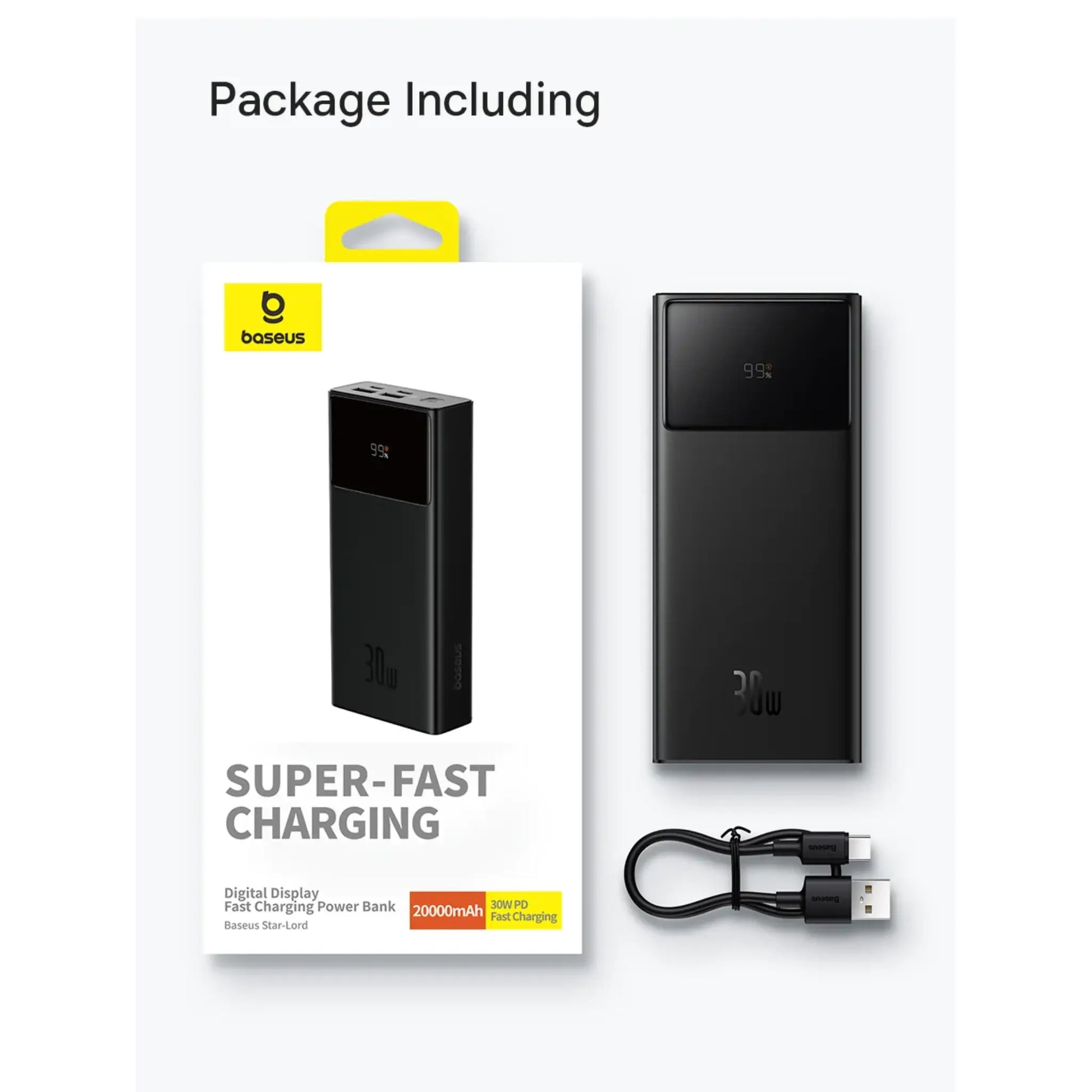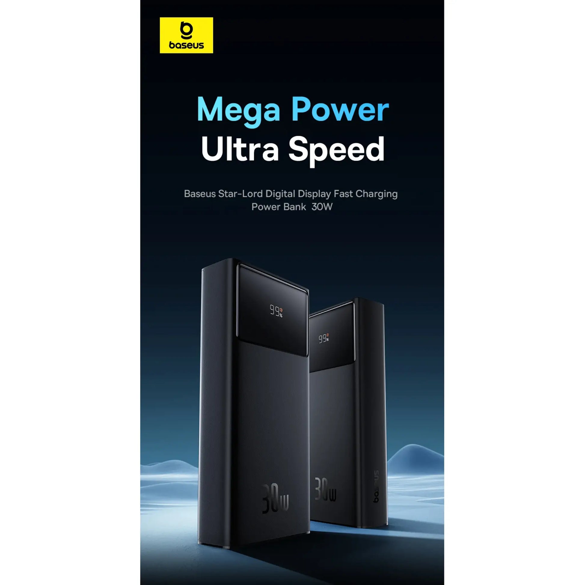 The Baseus Star-Lord 30000mAh Power Bank delivers powerful 30W fast charging with a large battery capacity designed for travel and daily use. Featuring a smart digital display, multiple charging ports, and advanced safety protection, it allows you to charge smartphones, tablets, and other USB devices quickly and efficiently. Its high-capacity design ensures multiple charges while maintaining reliable and stable power delivery.