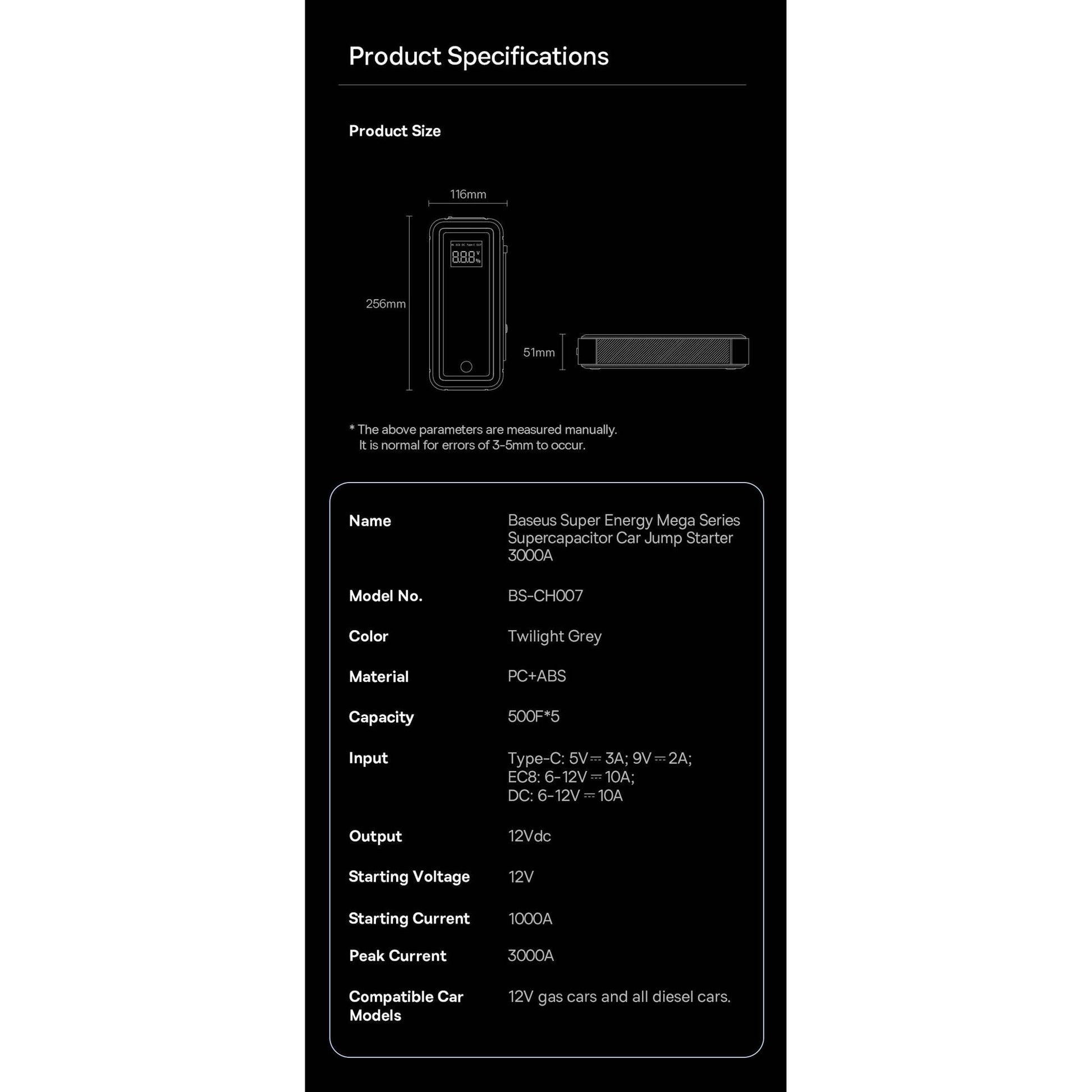 Baseus Super Energy Mega Series Supercapacitor Car Jump Starter 3000A