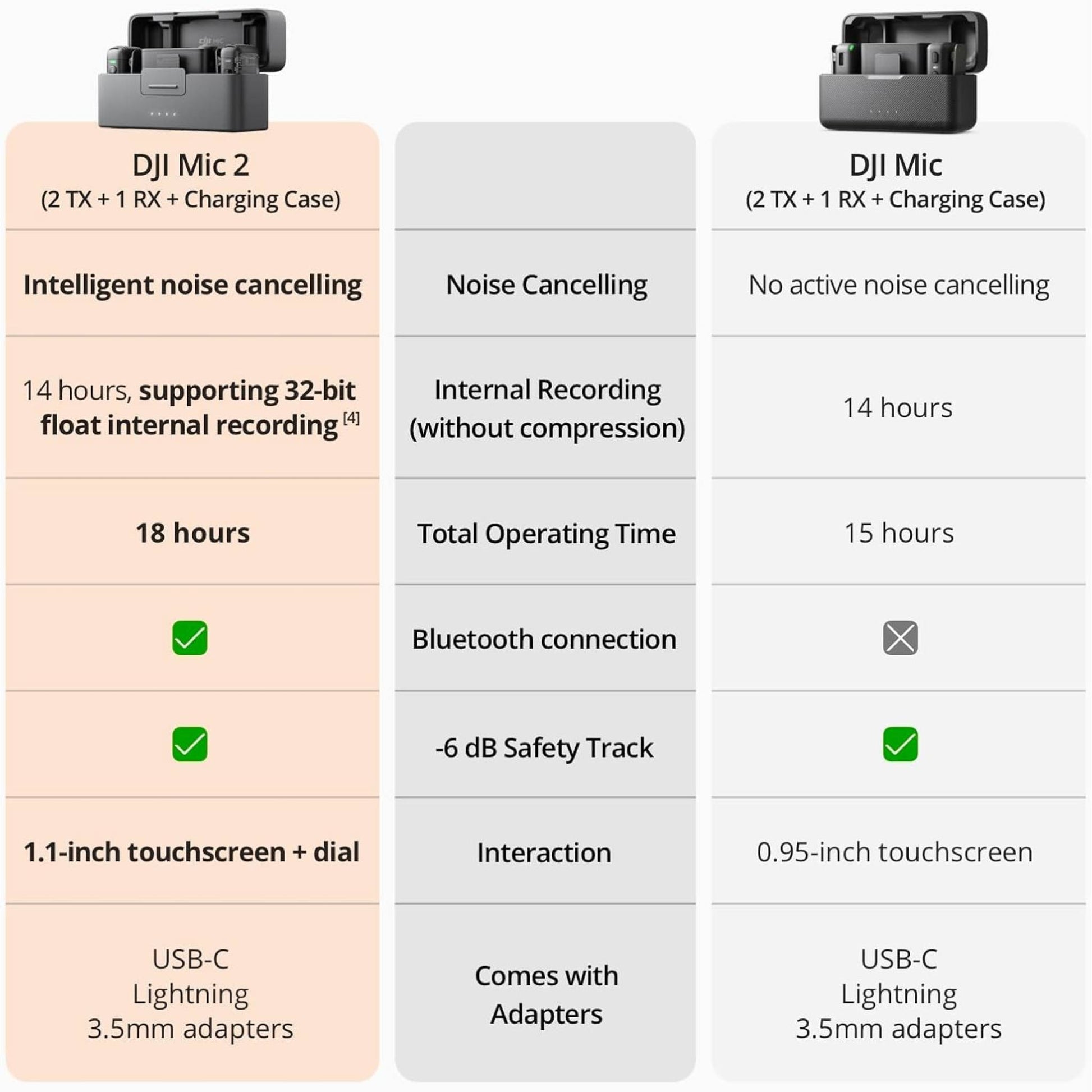 DJI MIC 2 (2 TX + 1 RX + Charging Case), All-in-One Wireless Microphones, Intelligent Noise Cancelling, 32-Bit Float Internal Recording, 250M (820 Ft.) Range, Microphone for iPhone, Android, Camera