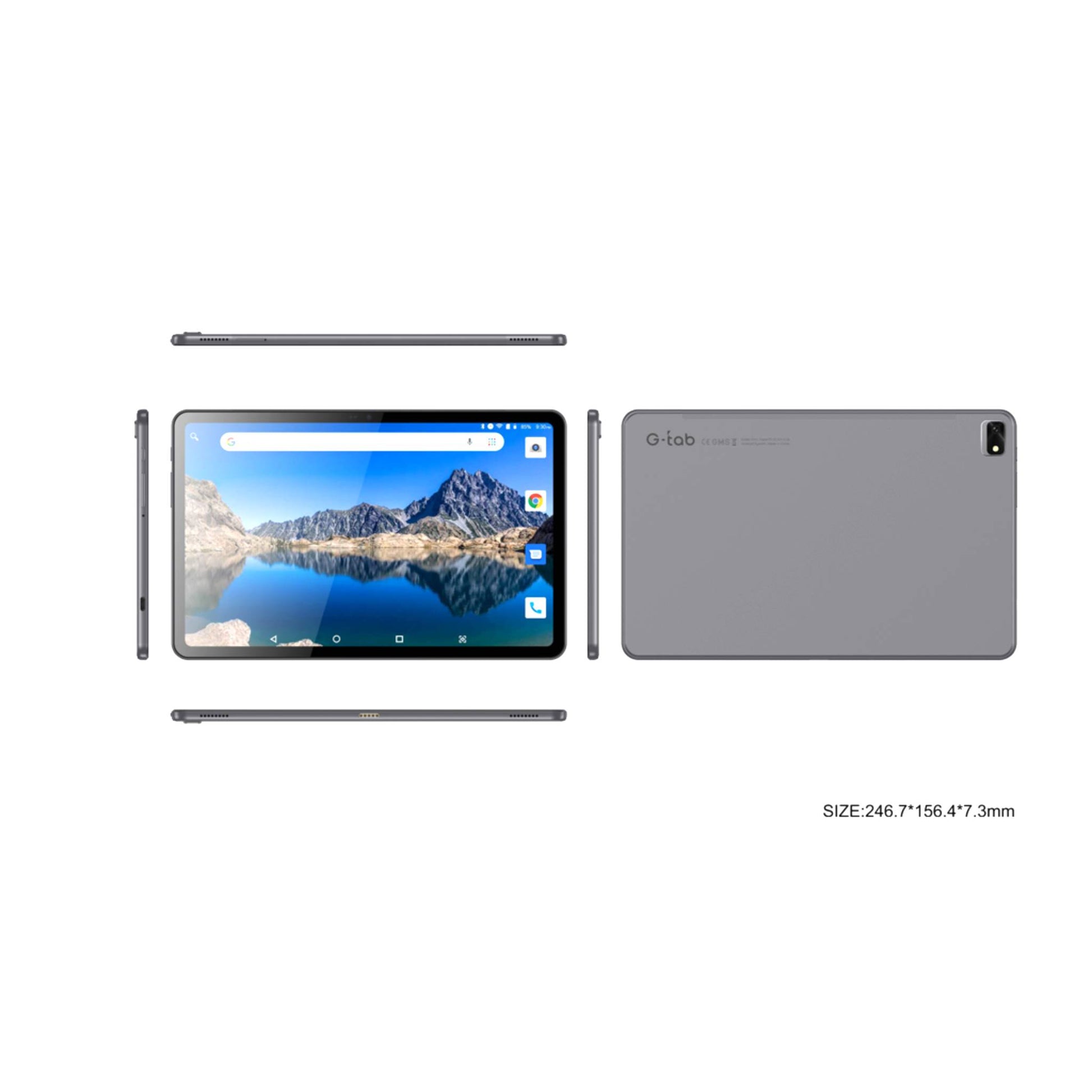 The G-Tab S40 features a 10.36" IPS display with a 1280×800 resolution, powered by an Octa-Core processor, 8GB RAM, and 256GB storage. It includes Android 12, 4G connectivity, dual SIM support, a 5MP front camera and 13MP rear camera, fast charging, a 7680mAh battery, and comes in Gray.