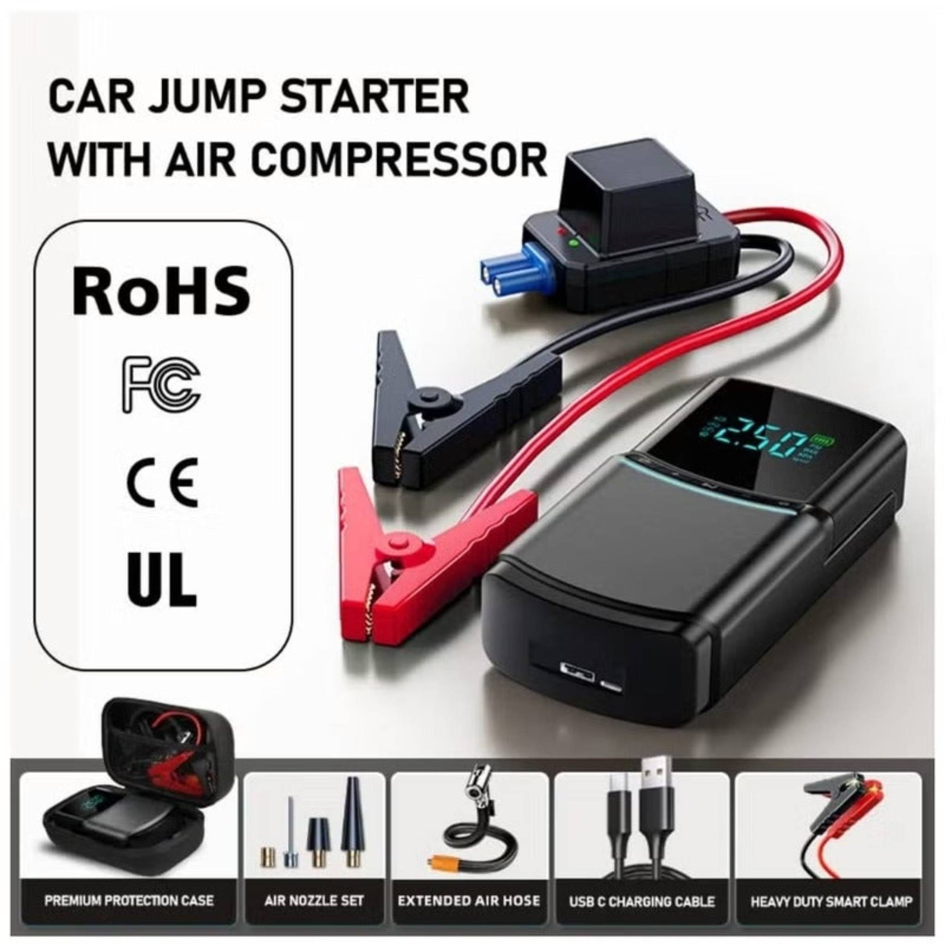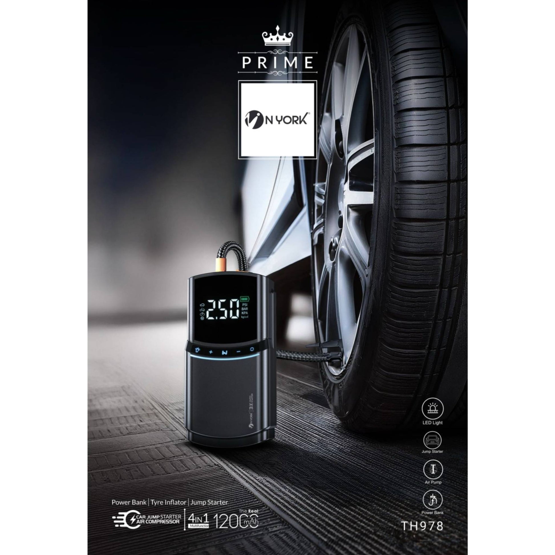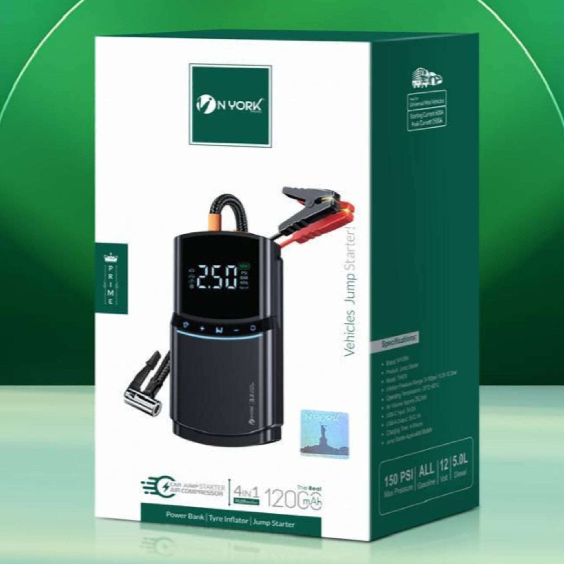 Whether you’re on a road trip, driving daily, or parked in a remote area, car emergencies can happen anytime. The NYORK 4-in-1 Car Jump Starter is a compact, all-in-one power solution designed to get you back on the road safely and quickly. Combining a powerful jump starter, a high-capacity 12000mAh power bank, an efficient tyre inflator, and an air compressor, this device is a must-have for every car owner.