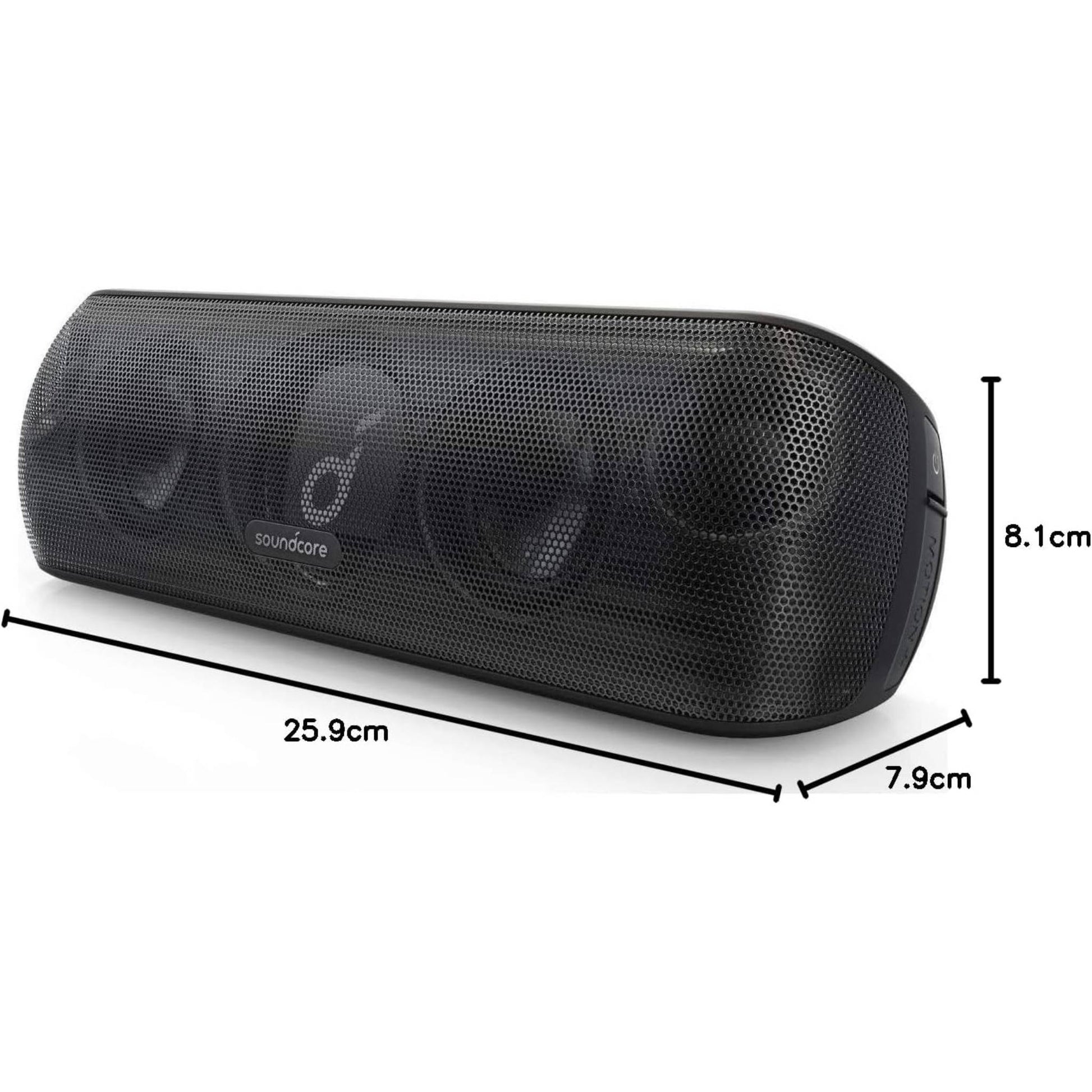 The Soundcore Motion+ Bluetooth Speaker delivers rich 30W Hi-Res wireless audio with enhanced bass and crystal-clear treble. Equipped with BassUp technology, customizable EQ through the Soundcore app, 12-hour battery life, USB-C charging, and IPX7 waterproof protection, it’s a powerful and portable speaker for any environment.