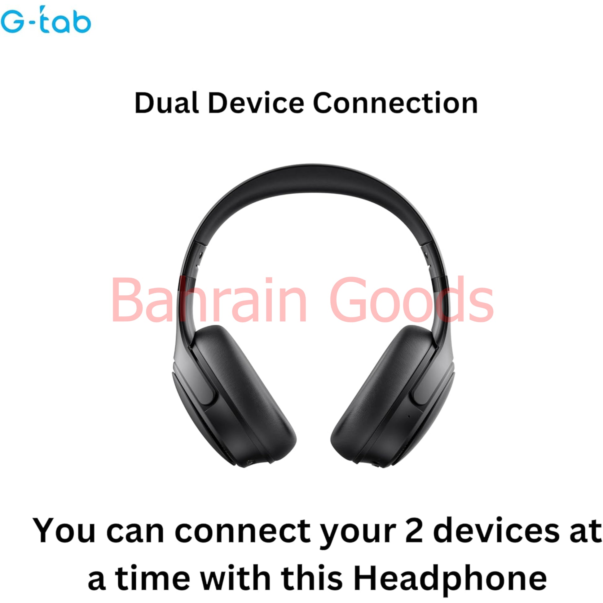 G-Tab VAH10 On Ear Headphone/ANC/HD Bass/Dual Device Connection/BT Version 5.3/50 Hours Battery Life/Protein Leather Earmuffs/Folding Portable Design/-20db Deep Noise Reduction (Black)