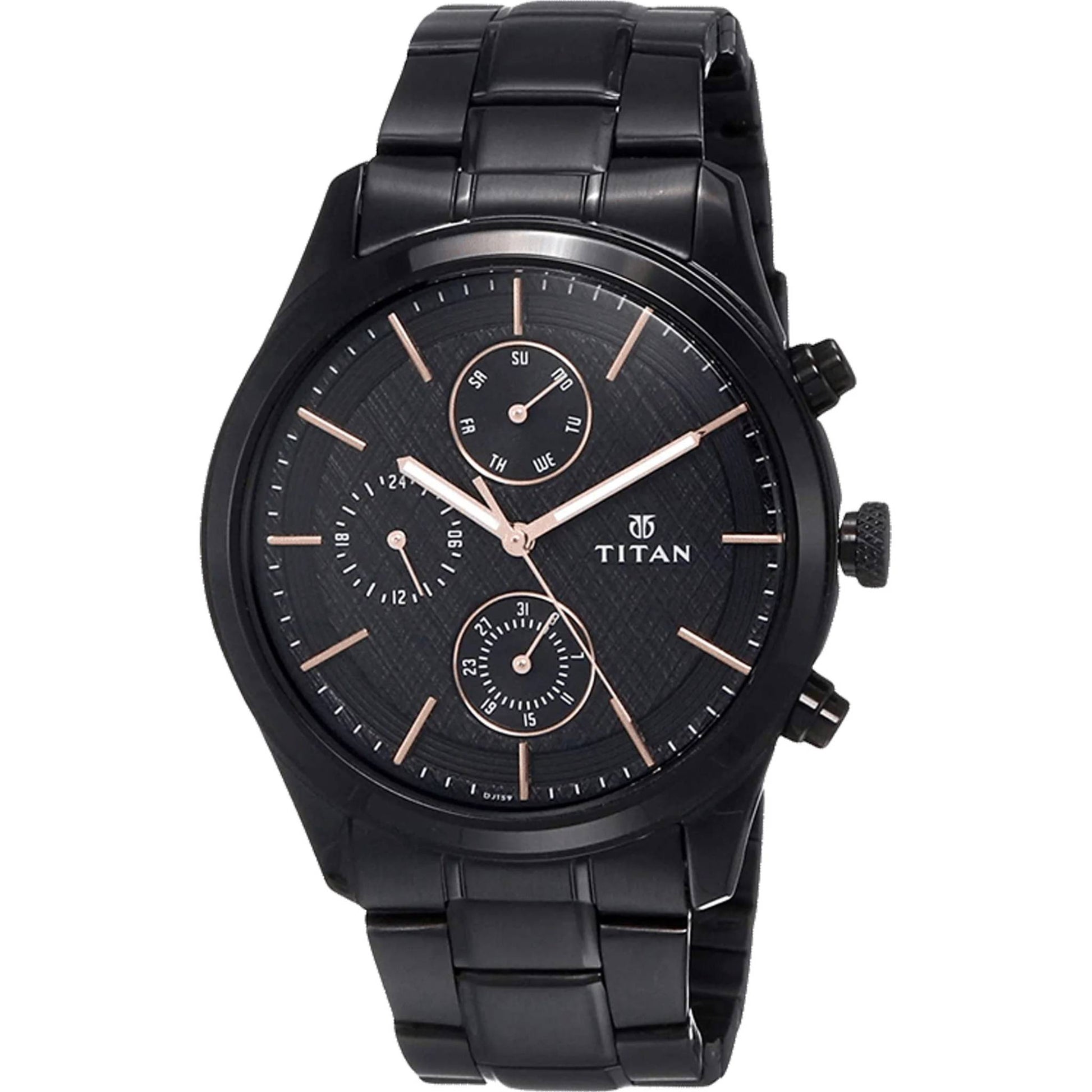 Titan Workwear Multifunction Black Round Dial Black Metal Strap Watch For Men